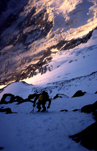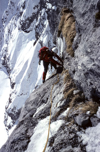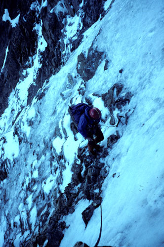 Ich habe hier meist meine Seilgefaehrten fotografiert. Diejenigen die diese Leute kennen benoetigen keine Namensangabe, und wer sie nicht kennt, dem sagt eine Namensangabe nichts. Deshalb sind hier nur der Berg, die Route und das Datum angegeben.