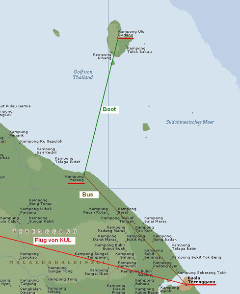 Am 07.08.2009 bin ich von Muenchen via Frankfurt, Abu Dhabi und Kuala Lumpur nach Kuala Terengganu geflogen, wo ich am Abend des 08.08.09