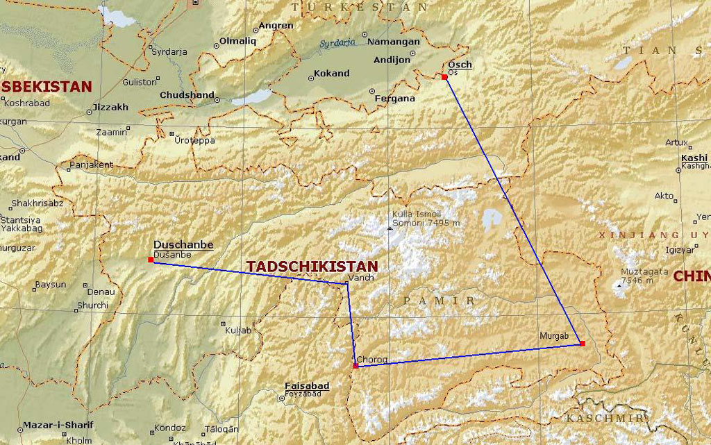Mit der Fahrt nach Murgab hatte ich viel Glück. Zwei deutsche Wissenschaftler die in den Semesterferien dort ein Forschungsprojekt betreiben, und die ich bereits am Flughafen Dushanbe kennen lernte, wollten auch nach Murgab. Ein Jeepfahrer der unbedingt nach Murgab wollte, hatte ihnen einen Sonderpreis geboten. Es fehlten aber noch 2 Mitfahrer. Sie fragten mich ob ich mitfahren wolle. Ich verkürzte meinen Khorog Aufenthalt um einen Tag, und los ging es. Ein weiterer Mitfahrer war nicht zu finden. Wir teilten den Gesamtpreis durch drei. So kam ich für 25.-€ nach Murgab. Billiger geht es nicht.