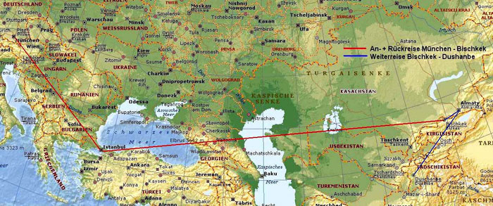 Als klar war dass ich, wenn ich keine weitere Zeit nutzlos und teuer vertrödeln wollte, meinen Plan ändern musste, erreichte mich eine Mail aus Osch von der Saskia. Sie musste auch noch Zeit überbrücken. Sie informierte mich außerdem, dass Kirgisien inzwischen visumfrei ist. Das passte.
