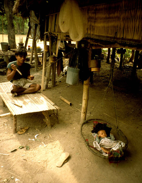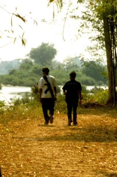 Grenze zu Kambodscha, Dorfbewohner mit Kalaschnikow