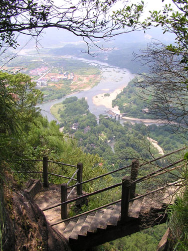 Wuyishangebirge, an den Fels gepappte Treppen am Roaring Tiger Rock