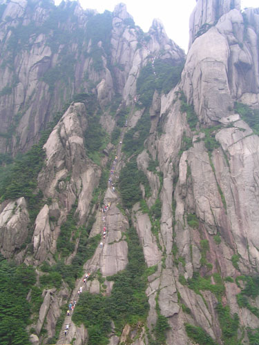 Huangshan, Stufenreihe zum Grat des Hauptgipfels