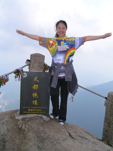 Huangshan, junge Chinesin auf dem Hauptgipfel