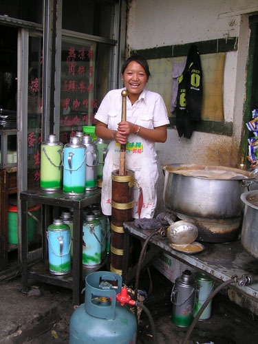 Lhasa, Buttertee-anfertigung in meinem Fruehstuecksrestaurant