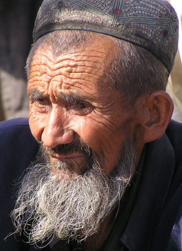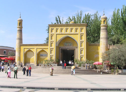 Kashi, die Moschee, Eingangshalle und Mauer um ein Waeldchen