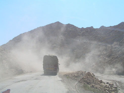 Kuqa, Fahrt durch eine Gebirgsstrassen Baustelle