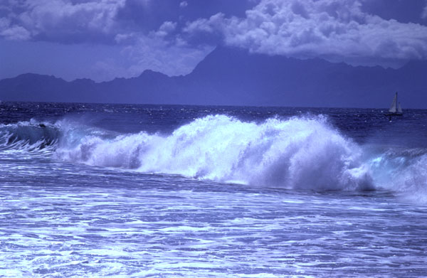 Tahiti - Brandung vor Tahiti, im Hintergrund Morea