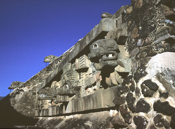 Verzierungen an den Pyramiden, u.a. Quetzelcoatl