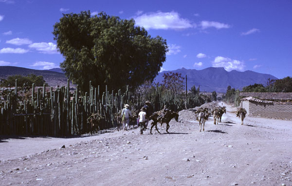 Heiss- trockene Landschaft bei Mitla, viele Kakteen