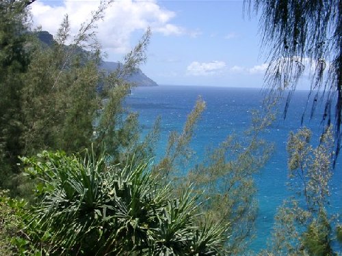 Ausblick von einem Wanderweg an der Na Pali (=nord ) Küste