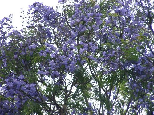 Blühende Bäume am Straßenrand, davon gibt es viele in zahlreichen Farben