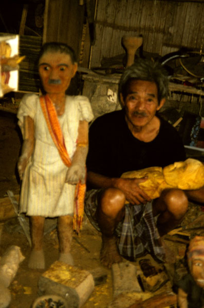 TauTau Schnitzer neben dem fuer sich selbst geschnitzten TauTau