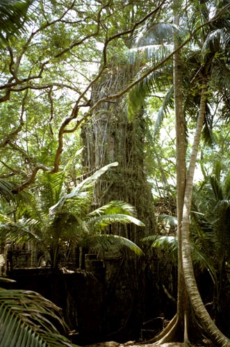 von Dschungel ueberwucherte Kirche auf den Andamanen