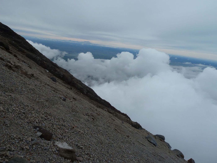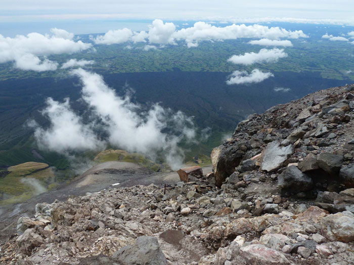 Taranaki, Überschreitung Tag 2, Geröllfeld im Gipfelaufstieg