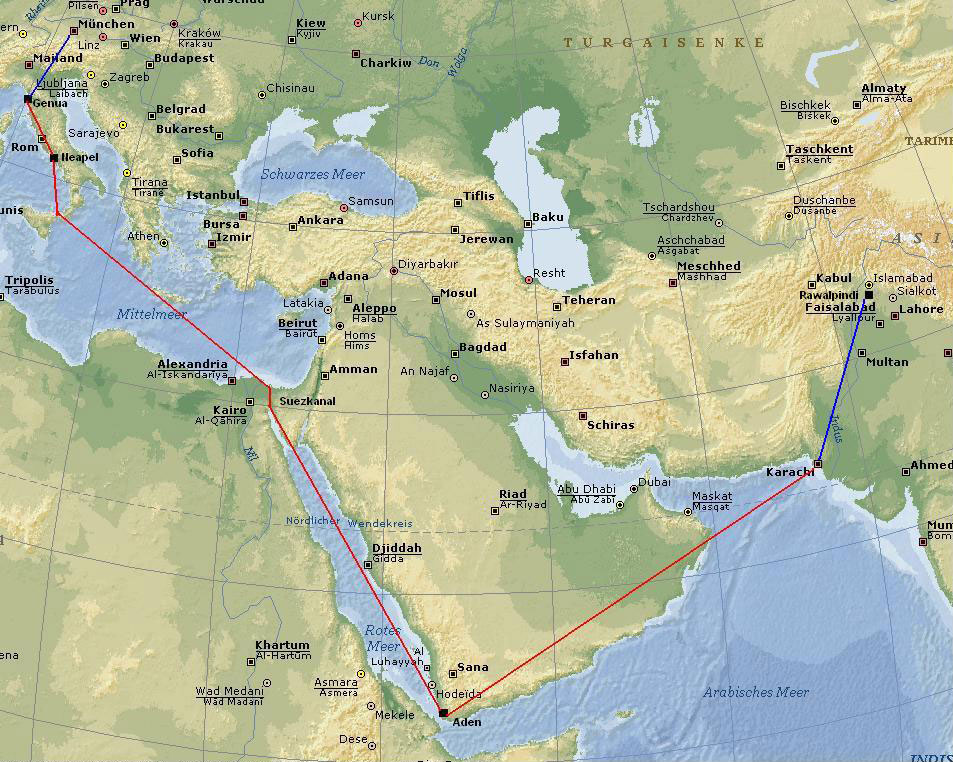 Route bis Karachi