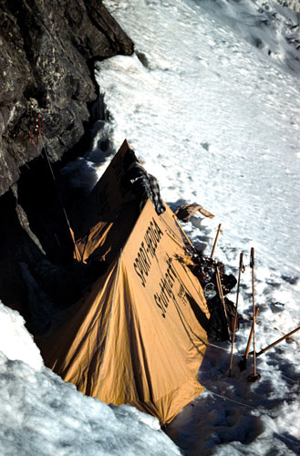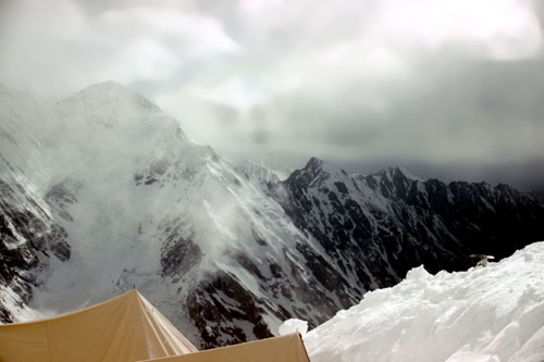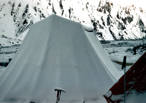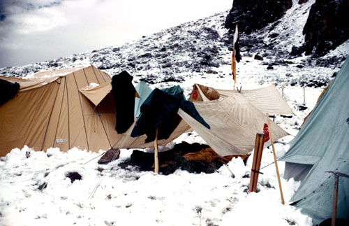 Ankunft im Hauptlager nach Schlechtwetter-einbruch