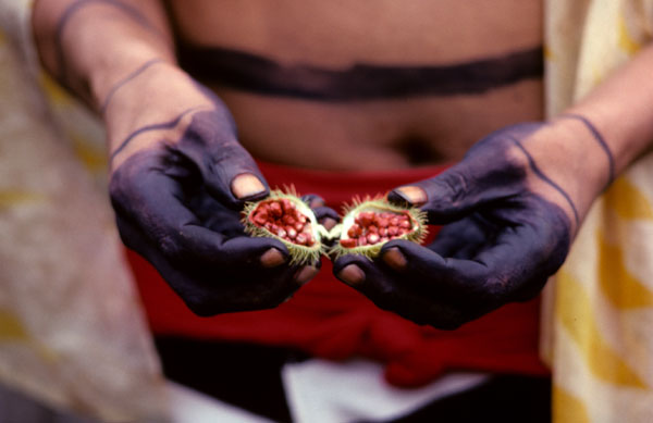 Mit den zerstampten Koernern dieser Frucht faerbt man die Haare