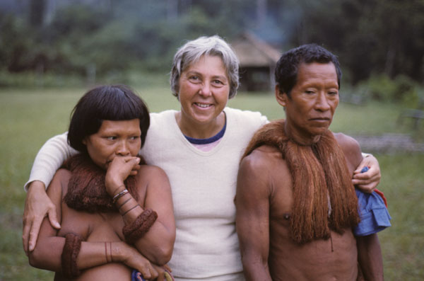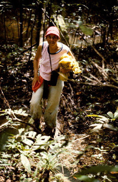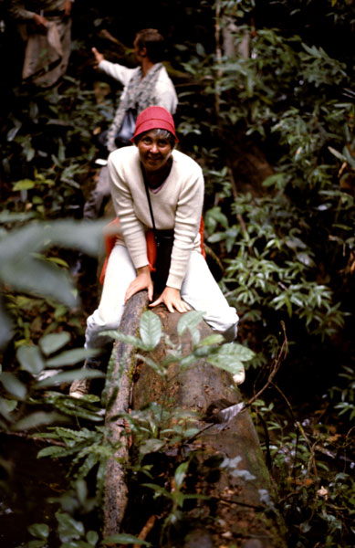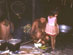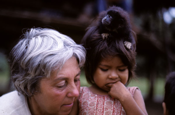 Inge mit einer Tochter von Raimondo (der kleine Affe war Dauerbewohner auf dem Kopf des Maedchens)