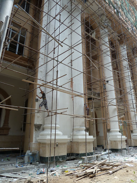 Mit solchen Gerüsten werden Hochhäuser erbaut