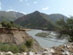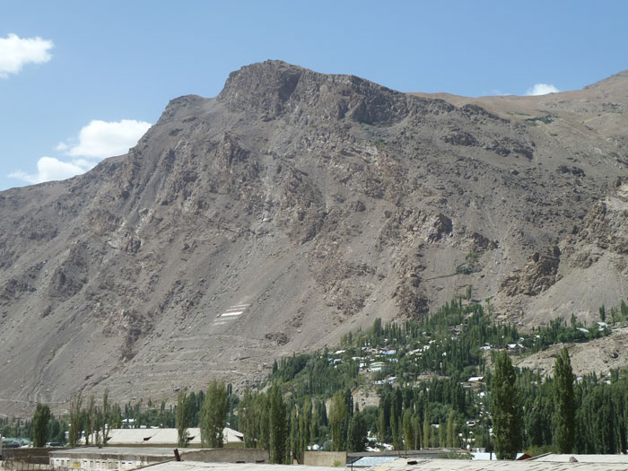 Berge bei Khorog. Der weiße Streifen in der Felswand zeigt Freude für 20 Jahre frei von SU