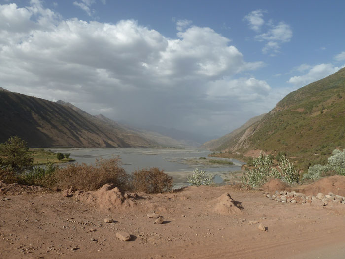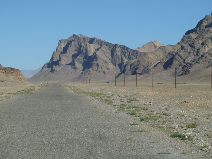 Weiterfahrt Richtung Osch. Die Stangen mit dem Machendraht das ist die chinesische Grenze