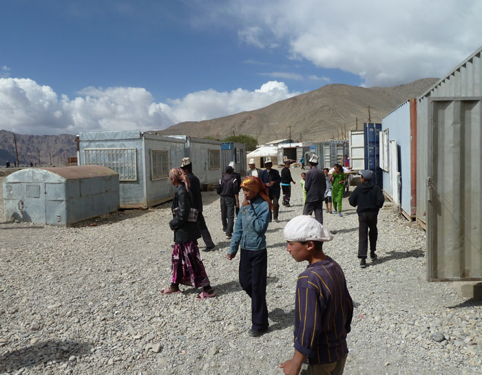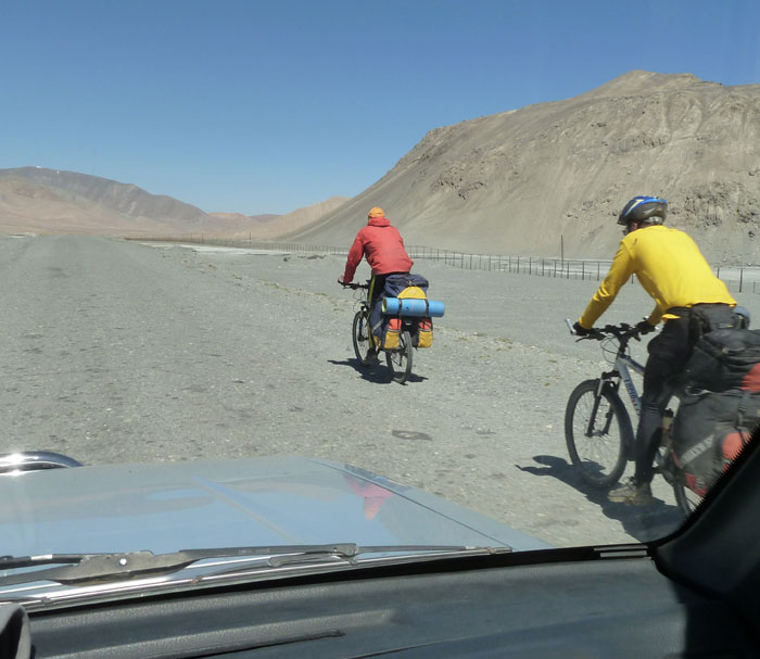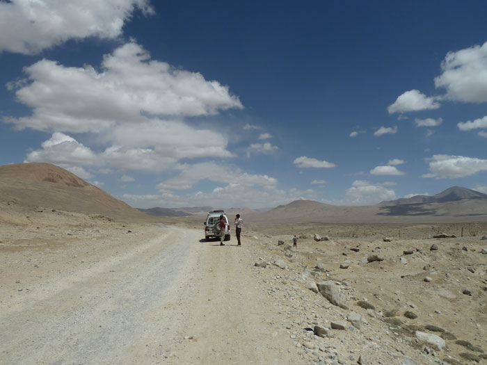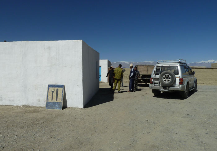 Mittagspause am Pamir HW. Man sitzt auf dem Tisch