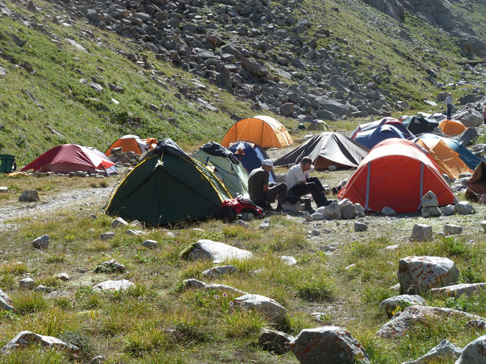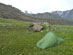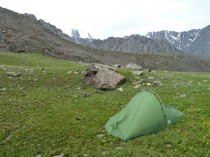 Ala Too, mein Zelt auf einer Wiese kurz unter dem Teleti Pass