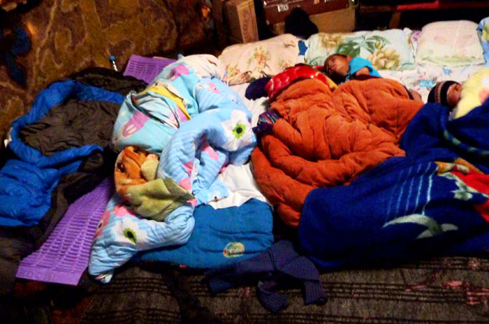 Song Köl und Tag 4, die Kleinen schlafen noch, links mein Schlafsack