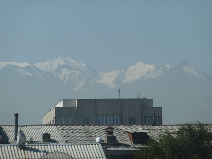 Die Berge des Ala Archa von meinem Hotelfenster in Bischkek